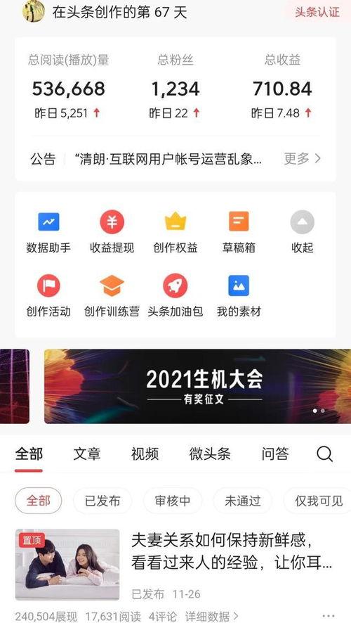 你知道吗?在互联网的海洋里,有一个地方可是藏着无数精彩的故事和创意,那就是微头条。这里,每个人都可以是故事的主角,每个作品都像是精心雕琢的珍珠,闪耀着独特的光芒。今天,就让我带你一起探索微头条的奇妙世界,看看那些让人眼前一亮的作品吧!